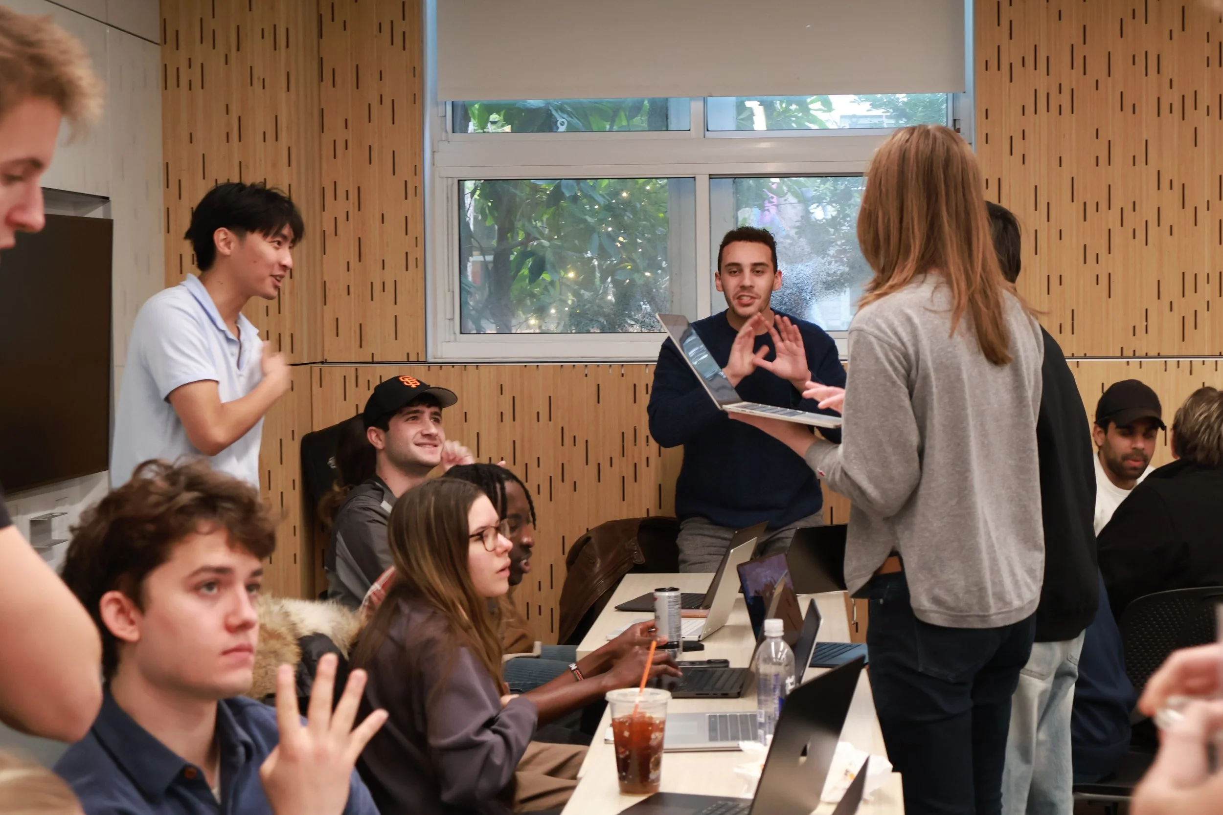 Students leave their seats. They negotiate deals with other teams for designing new products or sell them to the market